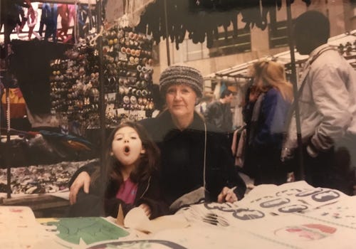 The photo below is of me with my grandmother standing by her market stall in Petticoat Lane, a street market in London.