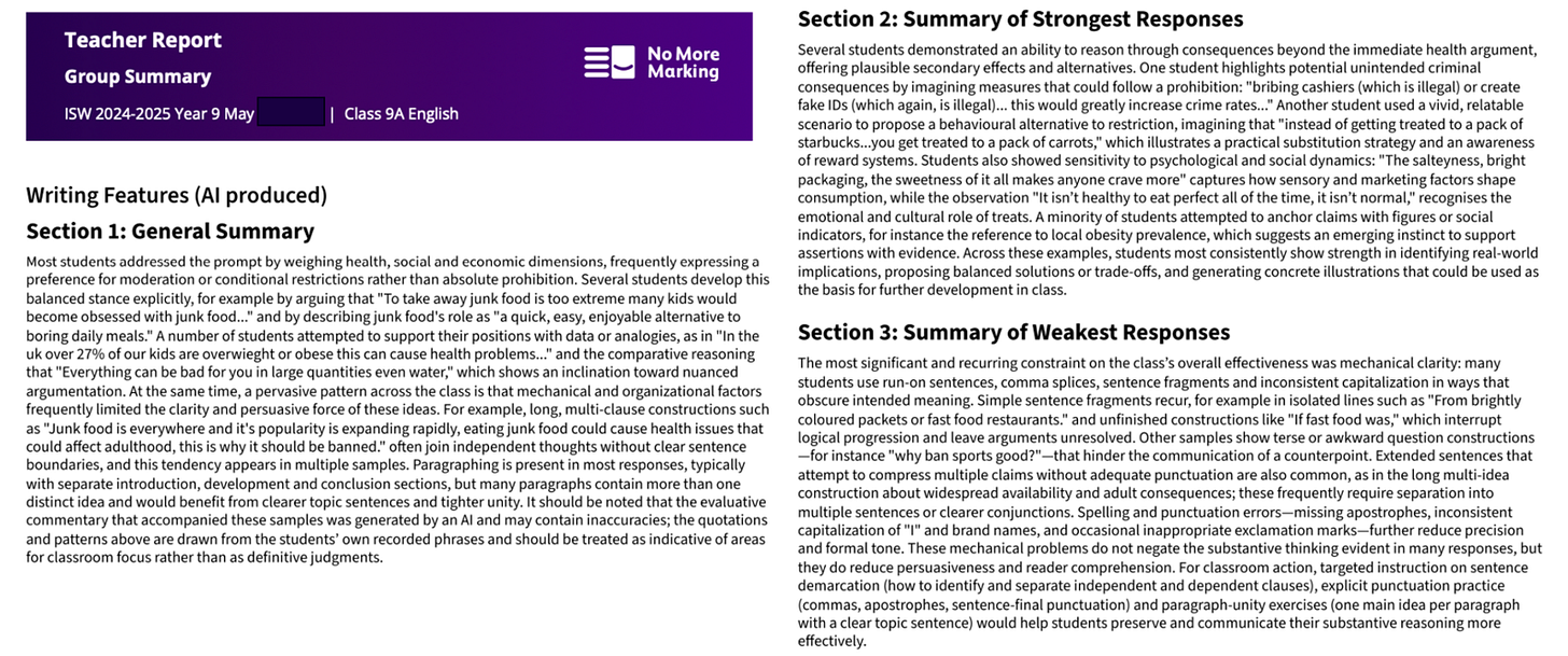 This has been a trend in English schools since before the development of Large Language Models. We have also written extensively about the value of whole-class feedback compared to traditional written comments, so to that extent we are pleased to see teachers recognising this.